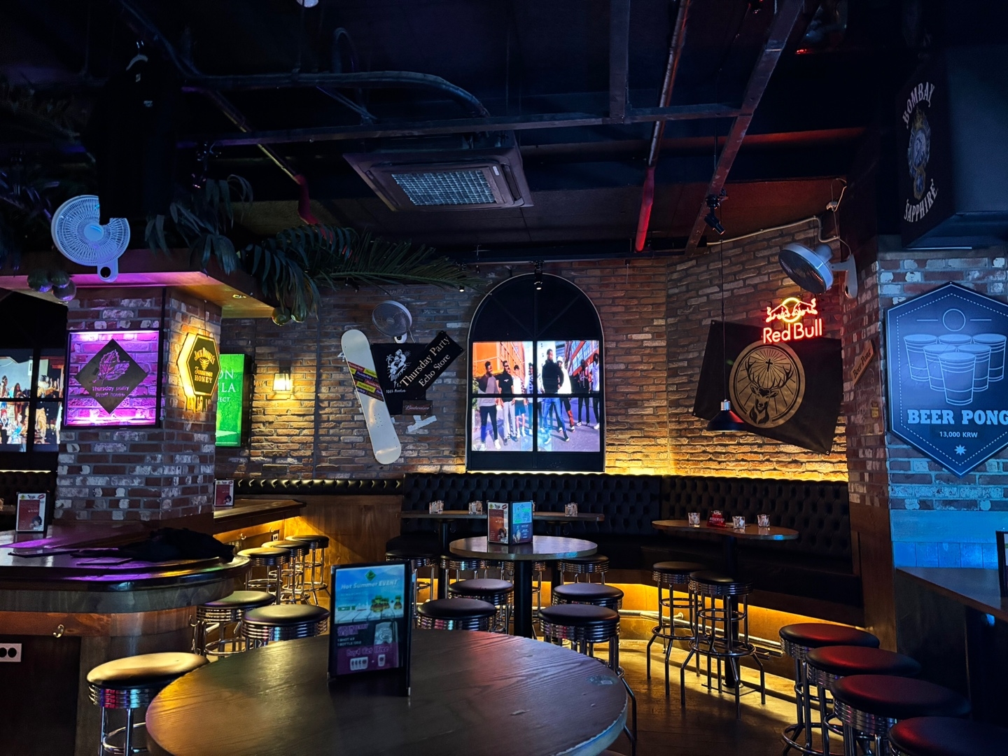 사람들이 들어오고 하나둘씩 자리를 잡으면 눈은 바쁘게 움직이다. 좌석 사이 거리가 멀지 않고 밝기도 적당한 까닭에 주위에 누가 앉았는지 확인하기 좋다. '헌팅'만을 목적으로 찾기엔 부족함이 있으나 지인과 담소를 나눌 겸 새로운 만남 모색하기엔 적합하다. 같이 술 한 잔 하자며 잔을 내밀기도 좋고, '다 드셨으면 우리가 한 잔 사겠다'며 말 걸기도 적당하다.