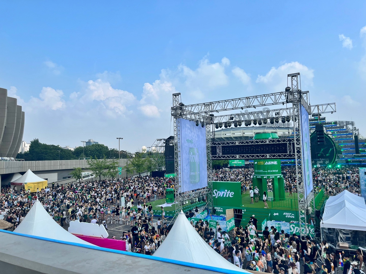 - 돗자리 등 깔고 앉을 물건 반입 안 됨. 외부음식 허용 안 됨. 물, 술, 음식 전부 이곳에서 해결해야 됨.