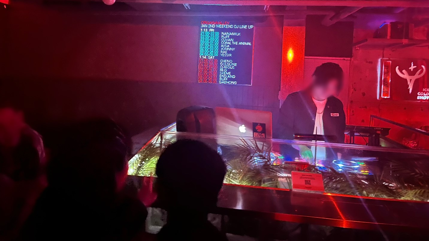 오르가즘 밸리는 지도 애플리케이션으로 검색하면 '계곡'으로 나온다. 그곳을 찍고 걸어가다 보면 붉은 간판이 눈에 들어온다. 같은 클럽이지만 장소가 둘로 나뉘어져 있다. 편의상 1부와 2부로 부르는데 1부가 메인이라는 것이 현장 사람들의 전언. 흘러나오는 음악도 달라 취향에 따라 장소를 선택하기도 한다. 두 곳을 자유롭게 왕래할 수는 있지만 왼쪽 손등에 각각의 도장을 찍어야만 한다.