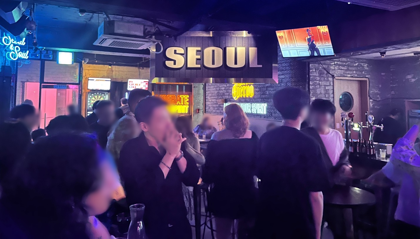 한국에서 보기 어려운 수위 높은 춤에 친구가 내뱉은 한 마디. 뒤편에는 외국인 여성과 한국인 남성이 주위 시선을 아랑곳하지 않은 채 입을 맞추고 있다. 매번 같은 광경이 펼쳐질리 만무하겠지만 다수의 외국인과 끈적한 춤사위, 저렴한 술과 춤추기 적당한 밀집도는 이곳의 분위기가 어떤지 단박에 알려준다. 외국인과 한국인이 한데 섞여 어우러지는 '서울펍'(SEOULPUB)이 그 무대다.